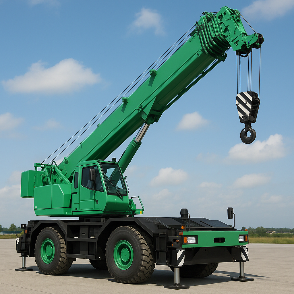 不整地でも走行・作業ができる自走式クレーンで建設現場や資材置き場などで、鉄筋・型枠・資材の揚重作業に活躍します。